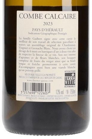 Hailing from the clay–limestone soils beside the Thau Lagoon, this Hallmark Pays d’Hérault white combines 75% Chardonnay, 15% Grenache Blanc, and 10% Sauvignon Blanc from clearly cooler, coastal vineyards. The fruit sees partial ageing, about five months, in oak barrels, which adds a touch of texture and richness without softness. The wine’s name, “Combe Calcaire” (“calcareous valley”), speaks to the terroir’s mineral-driven character.